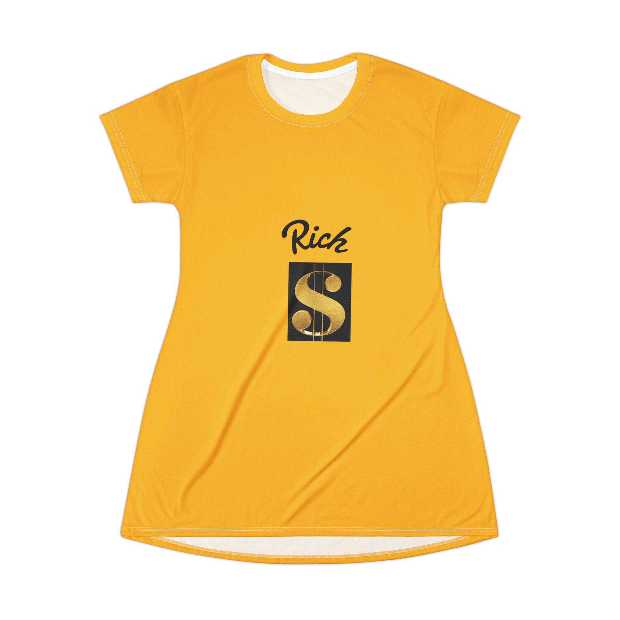 Embrace effortless style with this chic T-Shirt Dress. Crafted from lightweight, 100% polyester, it offers a soft and breathable feel, perfect for all-day wear. The vibrant yellow color and unique design make it a standout addition to any wardrobe, radiating a cheerful and confident vibe. Ideal for casual outings, gatherings, or cozy days at home, this dress is perfect for fashion-forward individuals seeking comfort without sacrificing style. It’s also a wonderful gift for birthdays, holidays, or any celebration that calls for a touch of vibrant flair.