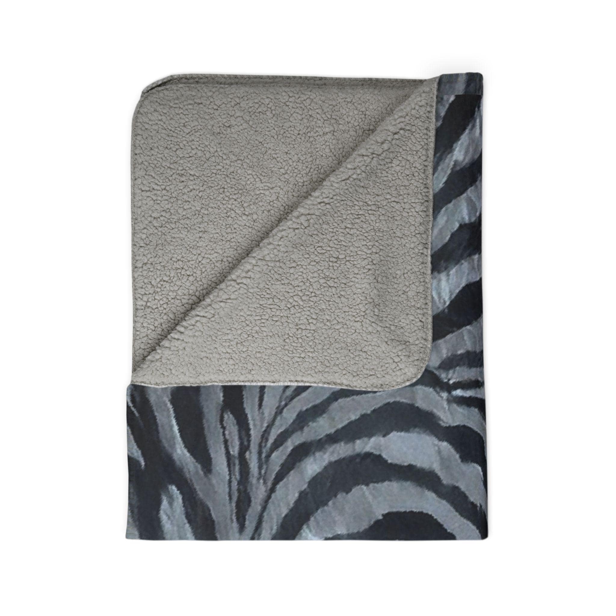 Sink into dark, velvety stripes and let this plush sherpa blanket become the backdrop to quiet evenings and bold bedroom accents. The charcoal-and-slate zebra pattern reads modern and mysterious — a little wild, but refined. It drapes easily over a sofa, folds up for a late-night movie, or layers at the foot of a bed when the temperature drops. The dense, double-sided fleece feels thick and comforting against skin while the hemmed edges hold their shape wash after wash. For anyone who loves moody tones, textured prints, and cozy nights in, this throw brings both style and warmth without shouting for attention.